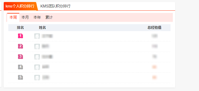 TATA木门内部建立了一套完善的积分管理体系,员工分享、阅读、点评知识都可获得相应的知识积分,并按个人、团队以及时间维度建立相应的积分排行榜,激发员工共享、学习知识的动力,促进知识的持续运营。