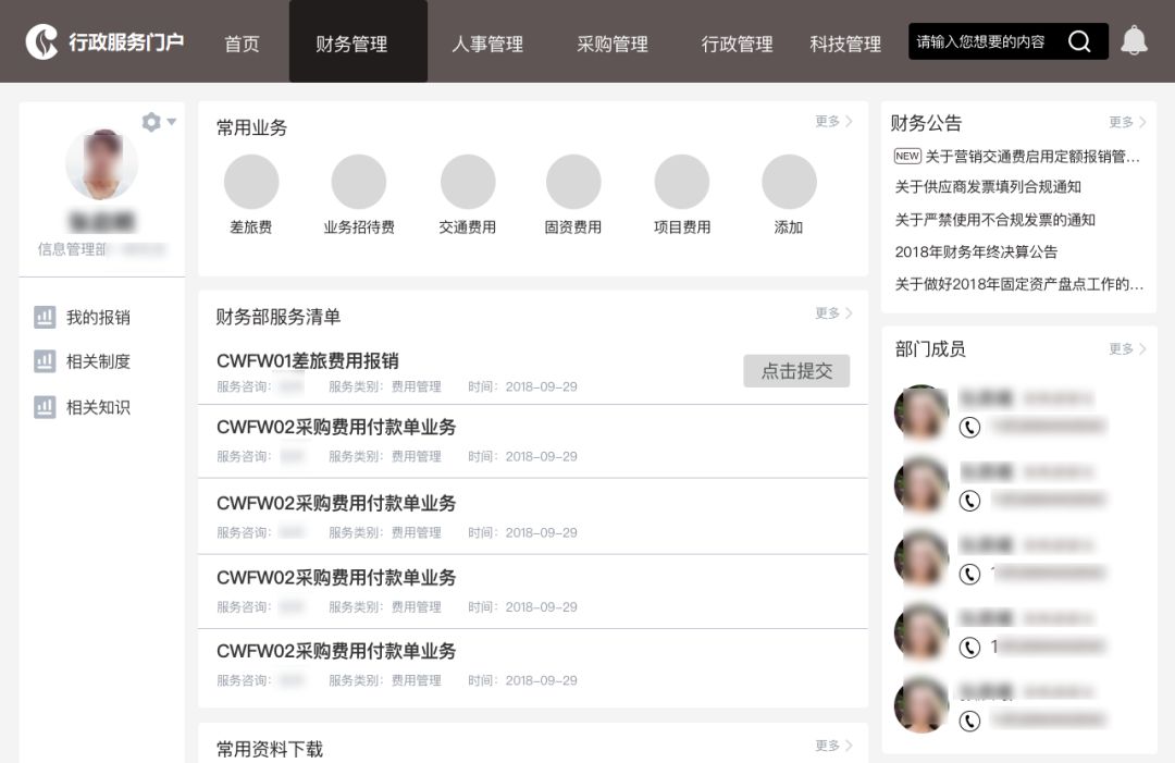 通过构建财务、人事、采购、行政等多角色门户,满足不同部门不同岗位员工个性化办公需求,推动各类事项办理高效进行。