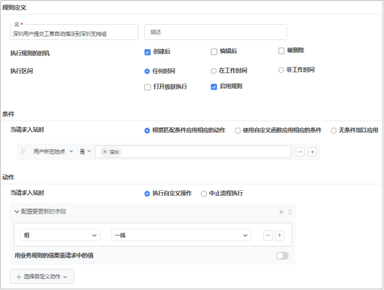 3. 我们在录入最终用户信息时,标记用户所在地点和部门。可根据地点自动匹配规则,分派工单给到相应的区域IT 团队。如无法处理,再移交总部解决。通过这一方案,形成有层次的交付网络和流程,保证不丢单,有序处理。
