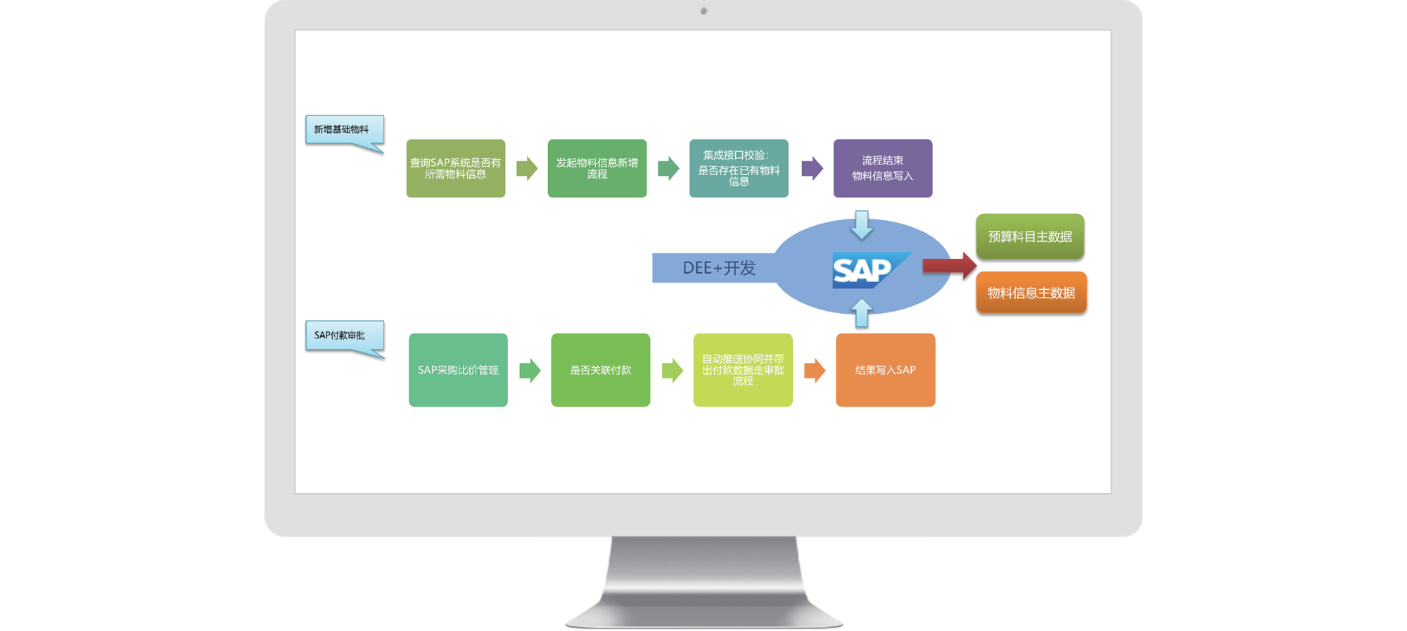 在目前华仁药业的数字化部署中,包括了前台的ECEP 系统和后台的制造(ERP)系统。另外通过各其它专业系统的协作整合,已经具备了成熟的整体信息化水平。 前后端系统成熟后,华仁药业将通过引入平台化的系统来解决两端连接融合的问题,即进行协同运营中台的持续建设。 信息化建设目标即以后台ERP(SAP)为基础,通过深化开发集成建设企业泛组织EC、EE、EP 系统,以协同平台为企业运营中台,整合定制化业务管理,集成其它异构系统,全程、全域、全端的连接、融合和智能,借助中台实现工作流与业务流的一体化,显著提升组织效率,有效管理各项业务。