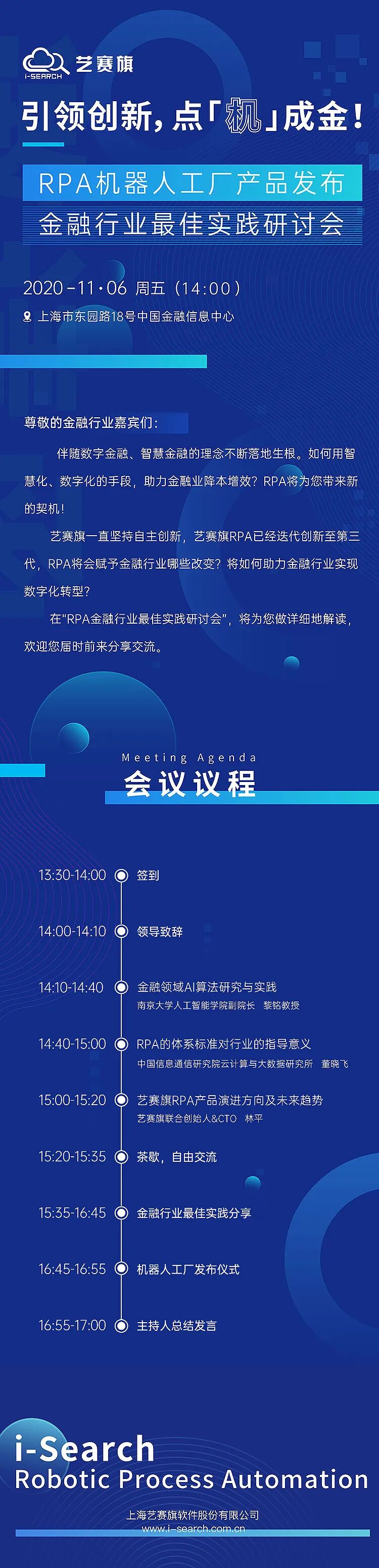 艺赛旗“RPA金融行业最佳实践研讨会”火热报名中,诚邀您的参加!