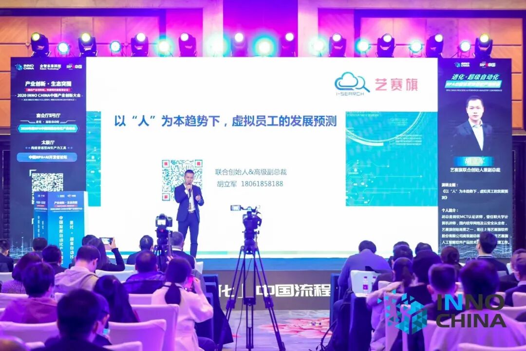 活动现场,艺赛旗联合创始人@高级副总裁胡立军在流程自动化演讲主论坛上发表了主题为“RPA中国—以人为本趋势下虚拟员工的发展预测”的演讲。