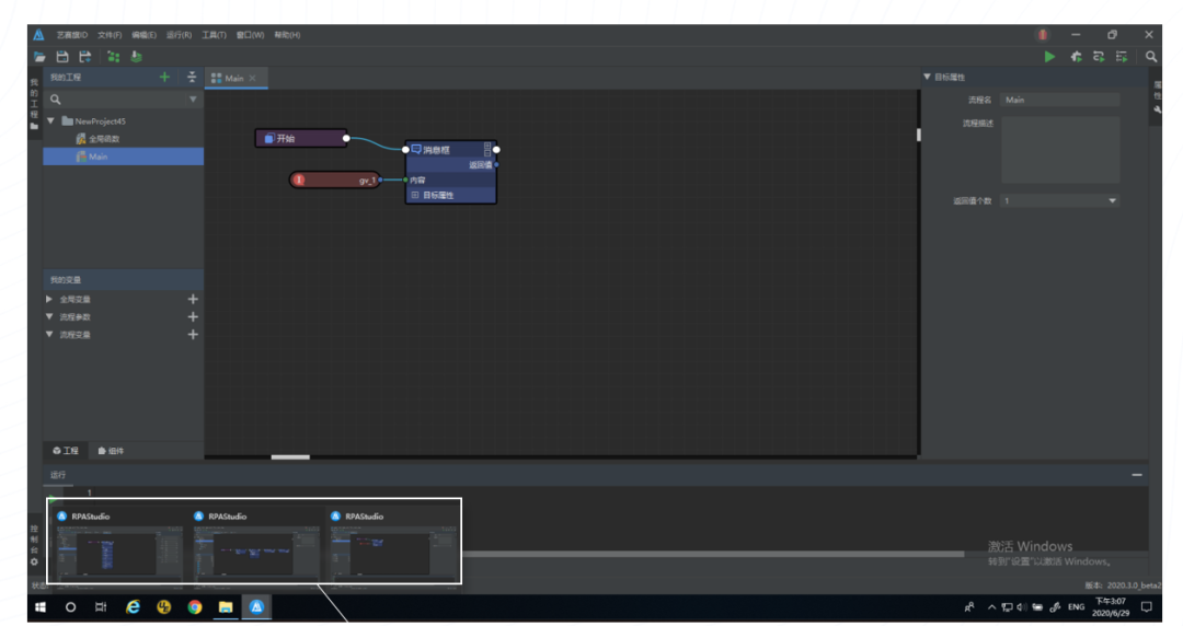 为了方便无编程经验的业务人员快速上手RPA,艺赛旗提供了拖拽可视化开发方式。例如,支持鼠标直接拖拽组件;使用颜色提示流程、组件、变量状态;图片识别方式支持,通过桌面图片识别的方式对程序的控件进行事件操作等。同时为了满足一些有编程经验的使用者,还推出了专家开发模式,例如,支持在设计器多开的情况下,将子流程进行复制操作,并粘贴到其他工程中进行复用;支持将子流程在当前工程中进行克隆等。