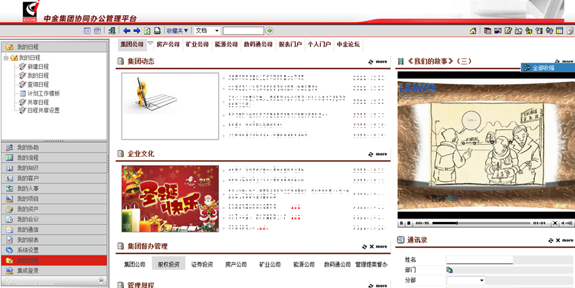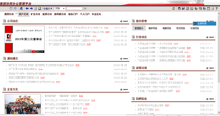 OA系统的新闻自动同步到外网进行呈现,打造即时化的外部新闻发布平台。除此以外,建立了以文化、制度、指导为核心的集团门户,体现本部职能部门职责与文化的部门门户,文化融合、业务聚焦的业务公司门户等。这样,集团与下辖公司以及兄弟公司之间的信息交流更加顺畅和及时;同时,打造了统一的企业文化宣传平台。
