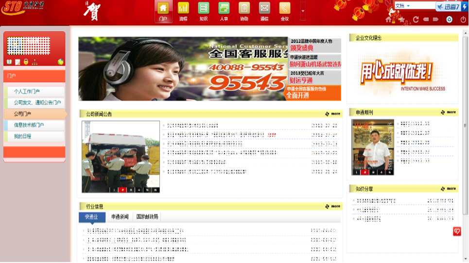 1、 物流信息门户。为申通所有相关的内外部人员提供信息与知识、社区、网上交易。访问门户的人群包括:客户、供应商、服务商以及作为后台管理人员的企业内部人员,加强跨部门、跨区域的沟通协作;